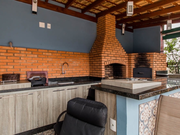 3 salas: Lareira, Jantar, Estar, Home Theater com uma varanda incrível – vista livre para o verde