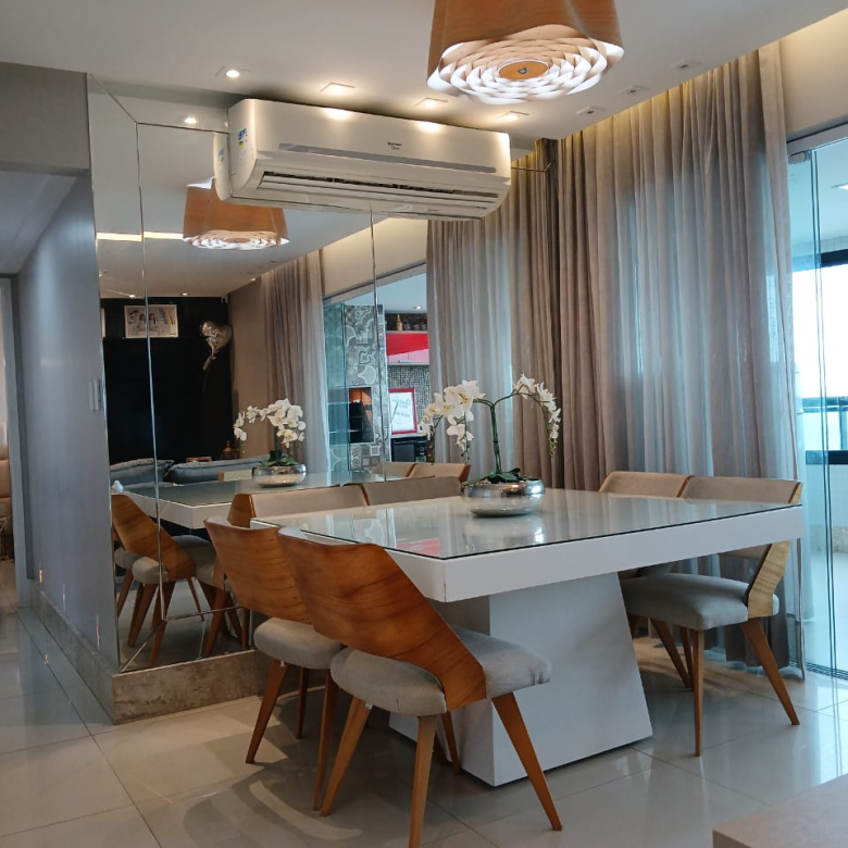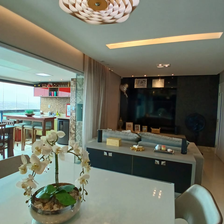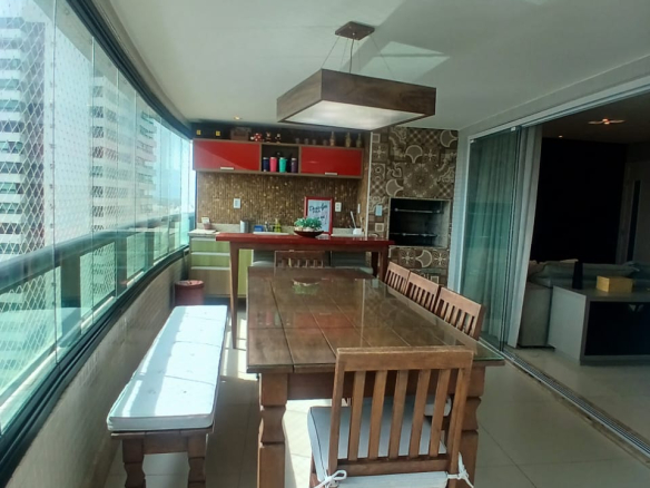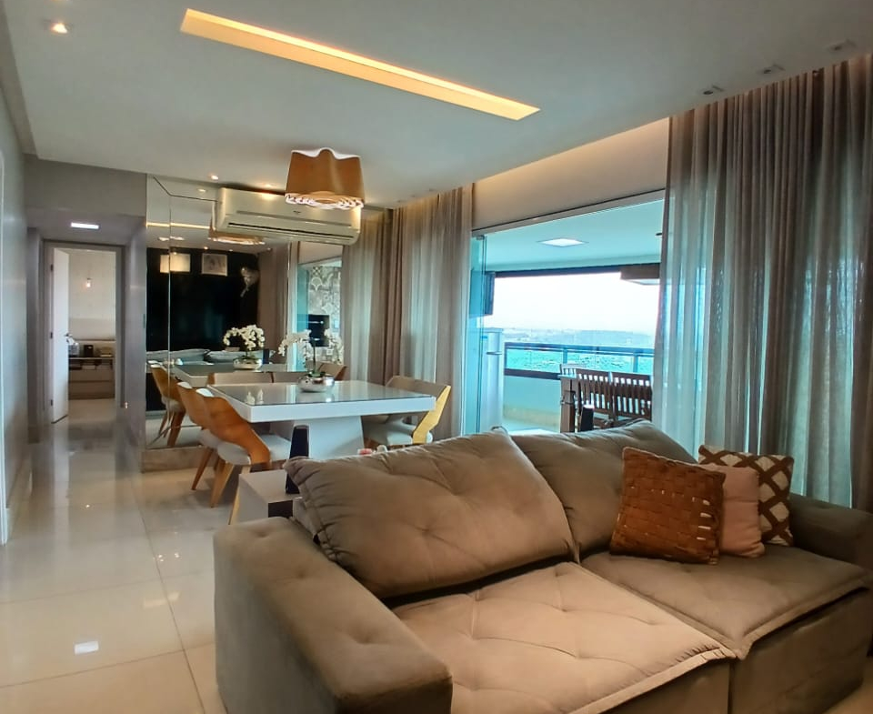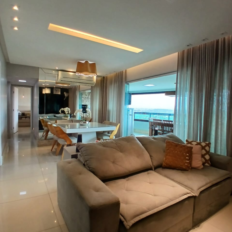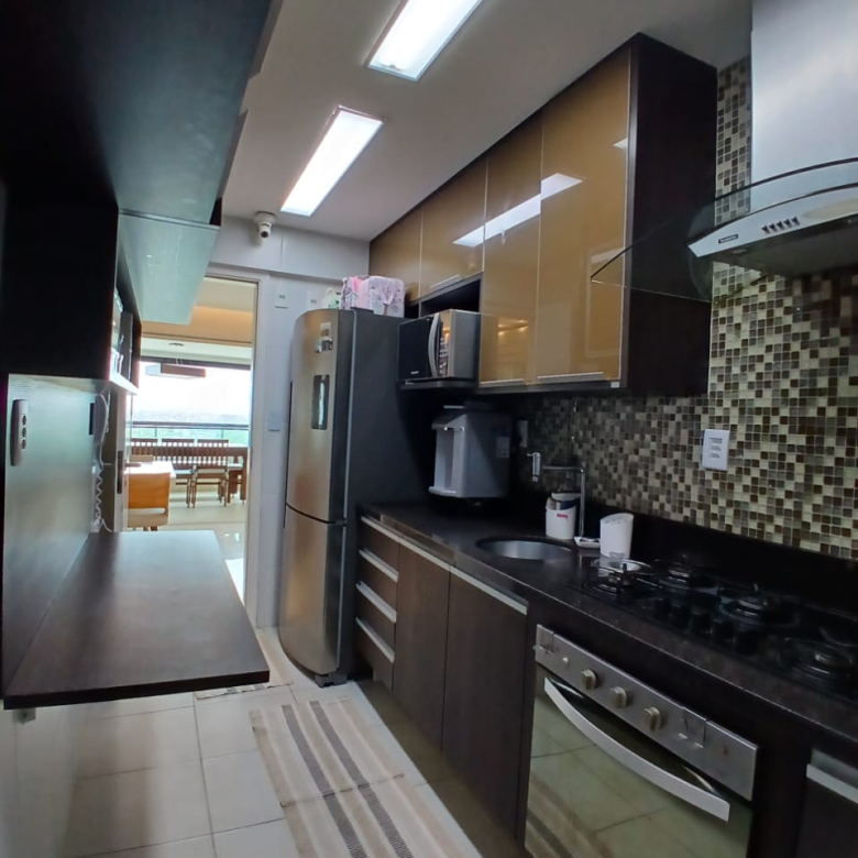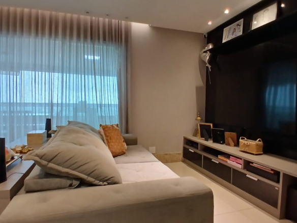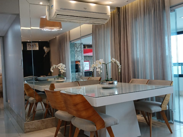 Apartamento 113 m², 26º andar , posição solar norte/sul, com 3/4, sendo 01 suíte com closet, 01 WC social, 01 sala de estar com sala de jantar, 01 lavabo, 01 varanda gourmet, 01 cozinha, lavanderia com wc de serviço, 02 vagas de garagem cobertas, várias benfeitorias agregadas, piso de porcelanato, móveis planejados em todos os cômodos, ar condicionado em todos os quartos e sala.