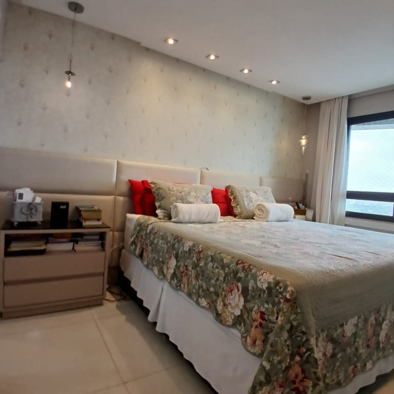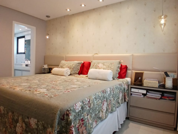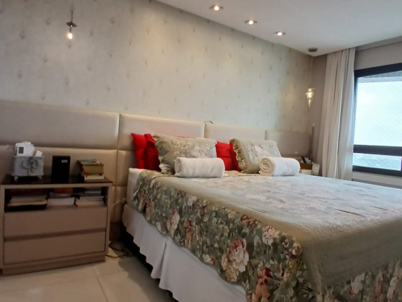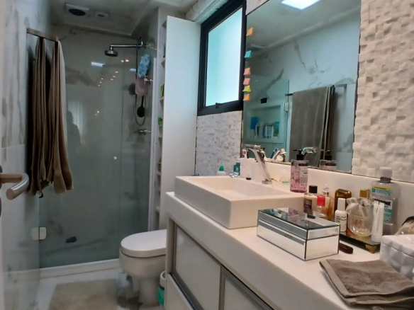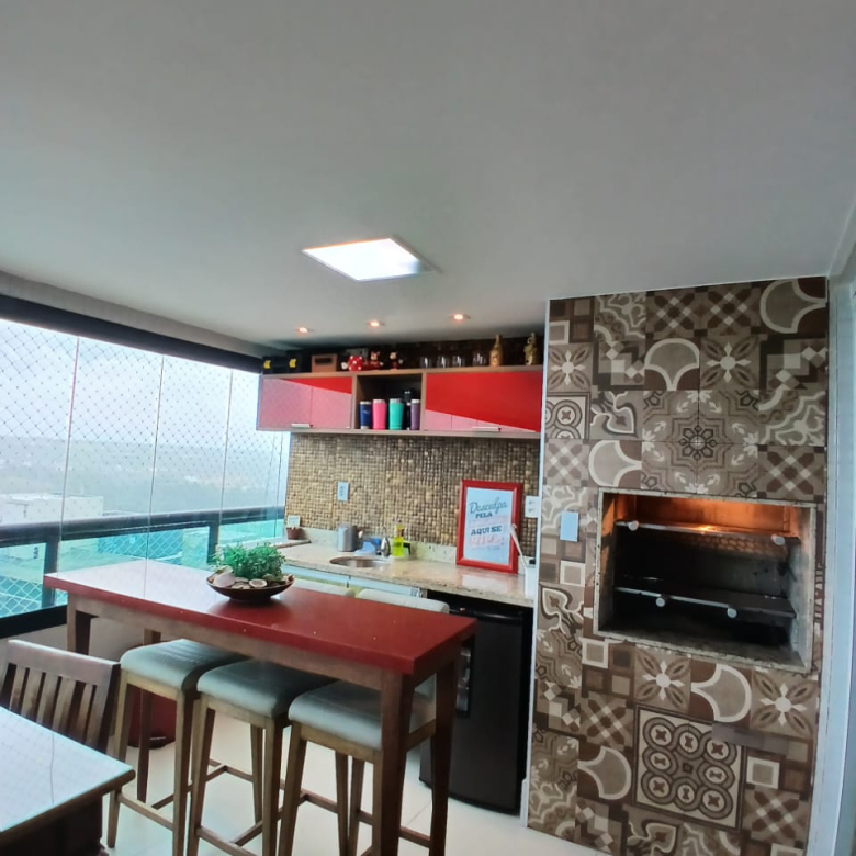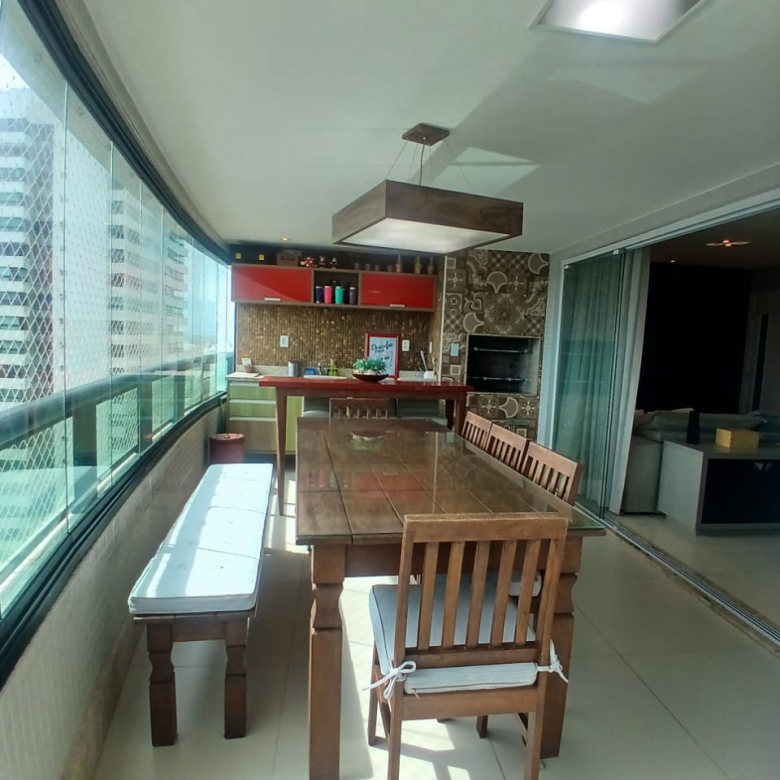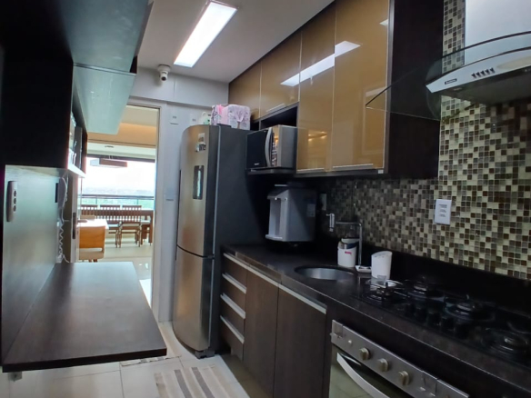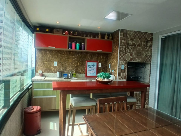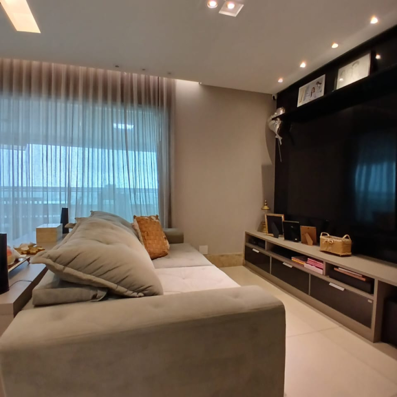 Apartamento 113 m², 26º andar , posição solar norte/sul, com 3/4, sendo 01 suíte com closet, 01 WC social, 01 sala de estar com sala de jantar, 01 lavabo, 01 varanda gourmet, 01 cozinha, lavanderia com wc de serviço, 02 vagas de garagem cobertas, várias benfeitorias agregadas, piso de porcelanato, móveis planejados em todos os cômodos, ar condicionado em todos os quartos e sala.