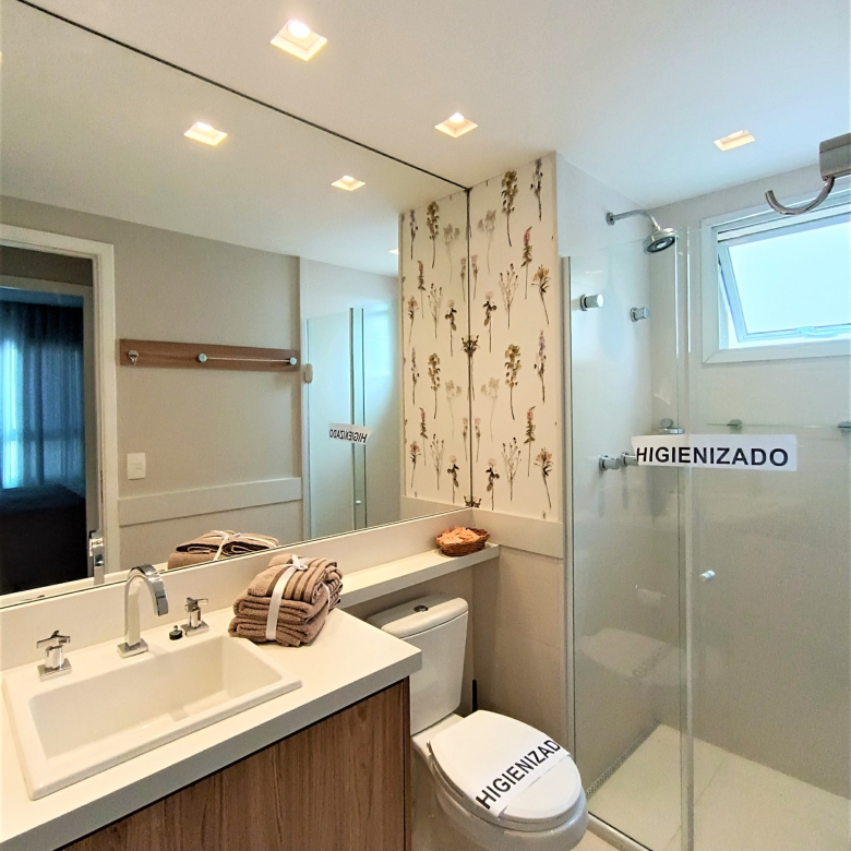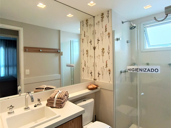 O banheiro é para que se sinta em um spa, espaçoso e muito conveniente, conta com um chuveiro de alta pressão, toalhas macias e perfumadas, além de shampoo, sabonete líquido e secador de cabelo à sua disposição.