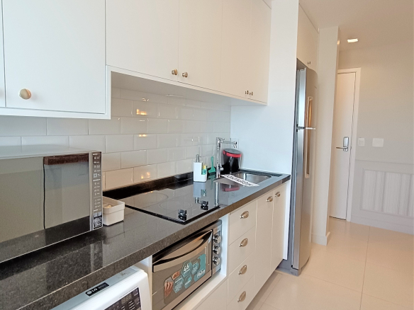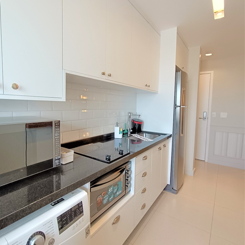 A entrada é fácil e segura com fechadura eletrônica por senha e portaria disponível 24h. A cozinha é completamente equipada com eletrodomésticos modernos e novos, incluindo geladeira, fogão indução, micro-ondas, sanduicheira, Airfryer, máquina de café expresso, liquidificador e todos os utensílios necessários para que você se sinta em casa e pronto para curtir momentos especiais.