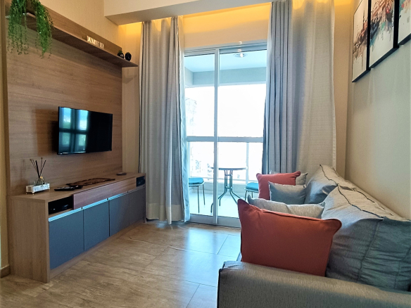Apartamento foi elaborado para proporcionar o conforto e a total integração do hóspede em todos os espaços. Com tecnologia, climatizado por ar-condicionado, deixando o ambiente com a temperatura que preferir, além de Wi-Fi de alta velocidade disponível em todos os ambientes. A vista para o horizonte da cidade é sensacional da sua sacada exclusiva depois de um dia de trabalho ou lazer, o que te conecta com a cidade em uma paisagem espetacular. Além, de poder contemplar o nascer do Sol todas as manhãs.